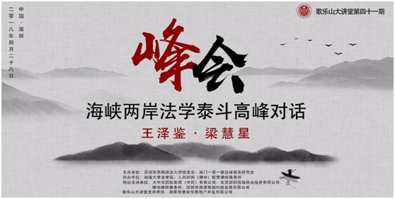2018年4月28日下午,深圳市“公民法律素质提升资助计划”资助项目、深圳市西南政法大学校友会打造的知名公益学术品牌“歌乐山大讲堂”第四十一期“海峡两岸法学泰斗高峰对话”在深圳市福田区大中华喜来登酒店如期举行。王泽鉴、梁慧星相约深圳,纵谈两岸民法典。