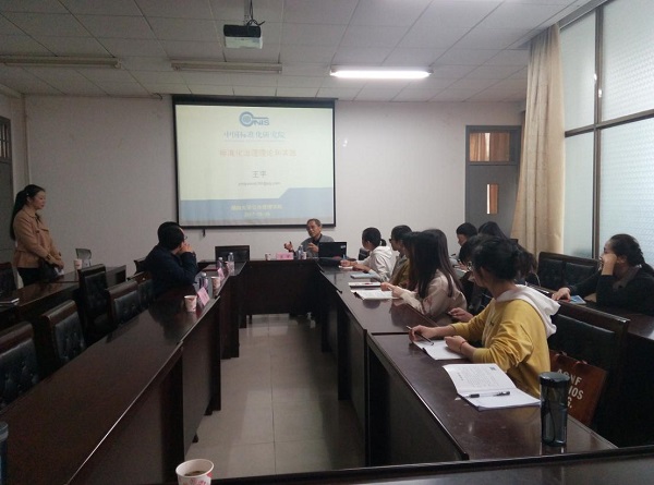 讲座开始前,我院党委副书记、副院长付蓉芬老师代表英国365集团公司向王平研究员颁发了聘书,聘请王平研究员为我院兼职教授。在座师生对王平研究员的到来表示热烈的欢迎,并且十分期待王平研究员来我院授课讲学。