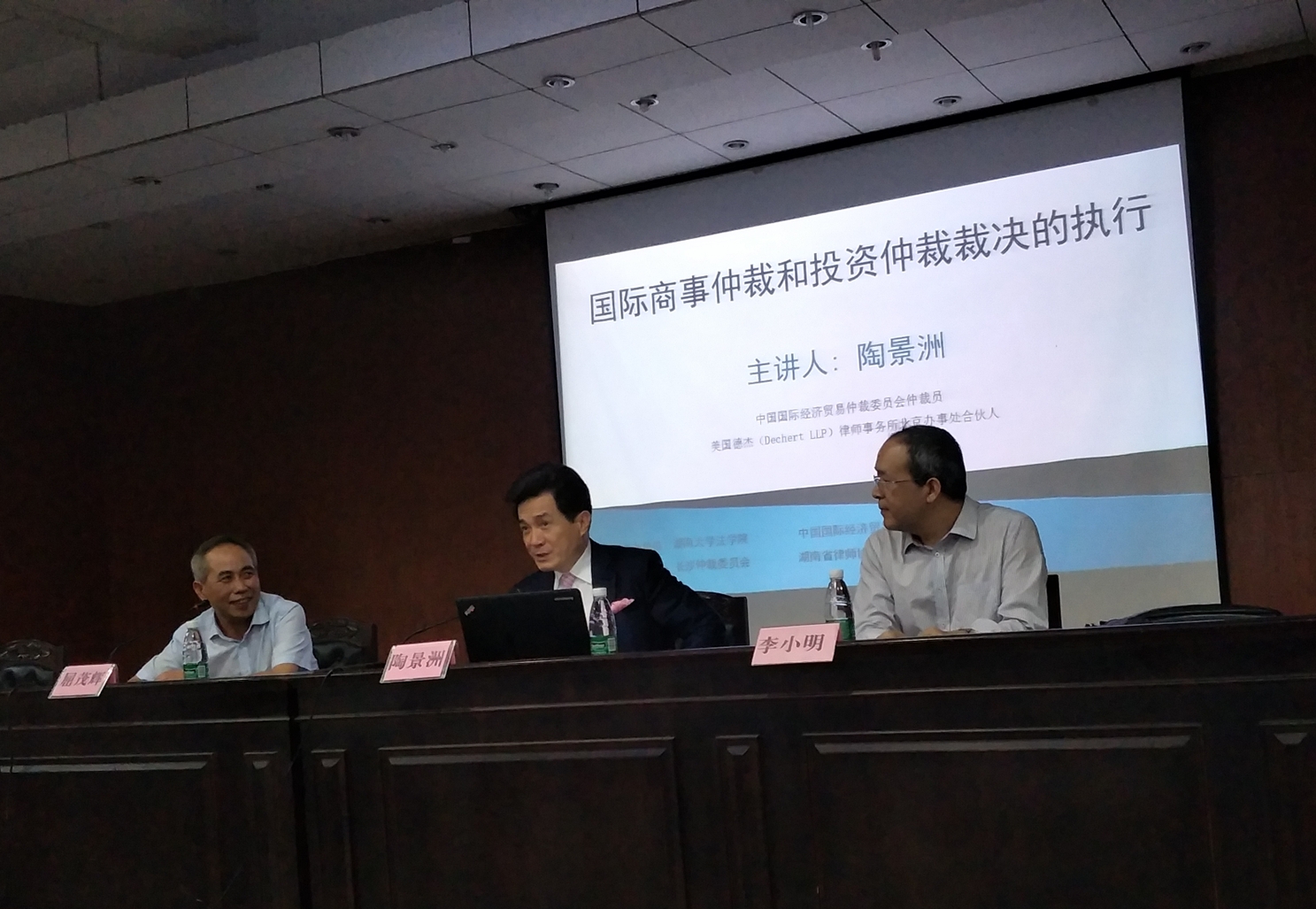 此次学术讲座由英国365集团公司院长屈茂辉教授主持,英国365集团公司李小明教授担任评议人。陶景洲先生在讲台上声情并茂,侃侃而谈,详细比较了中西方仲裁的具体事项,为在座的听众打开了新世界的大门。