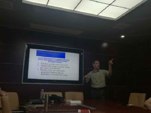 7月4日上午,美国纽约州立大学水牛城学院刑法学系Michael Cretacci教授来访我院,在405会议室开展了以“Fighting Facts:Adversarial Justice in America ”为主题的学术讲座。院长屈茂辉,法学系老师段启俊、彭辅顺、赵香如、王燕飞、姚诗、陈果、王红兵以及学院部分博士生参加讲座。