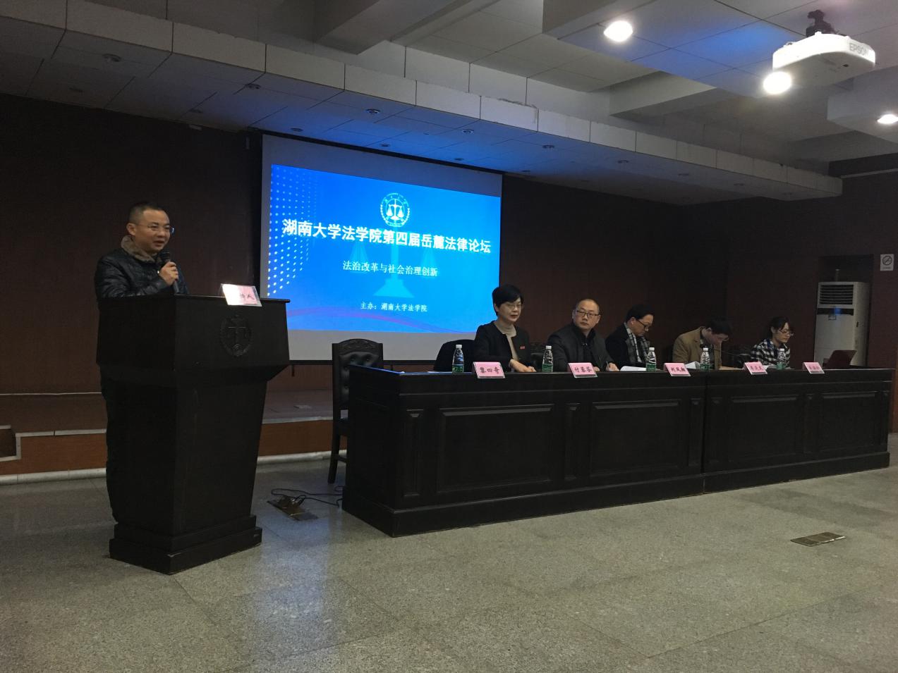 2016年12月24日上午,英国上市官网365第四届岳麓法律论坛:“法治改革与社会创新”在英国365集团公司隆重举行。本次论坛是一次以法学、政治学、公共管理学为主要研讨内容的大型综合类学术论坛。