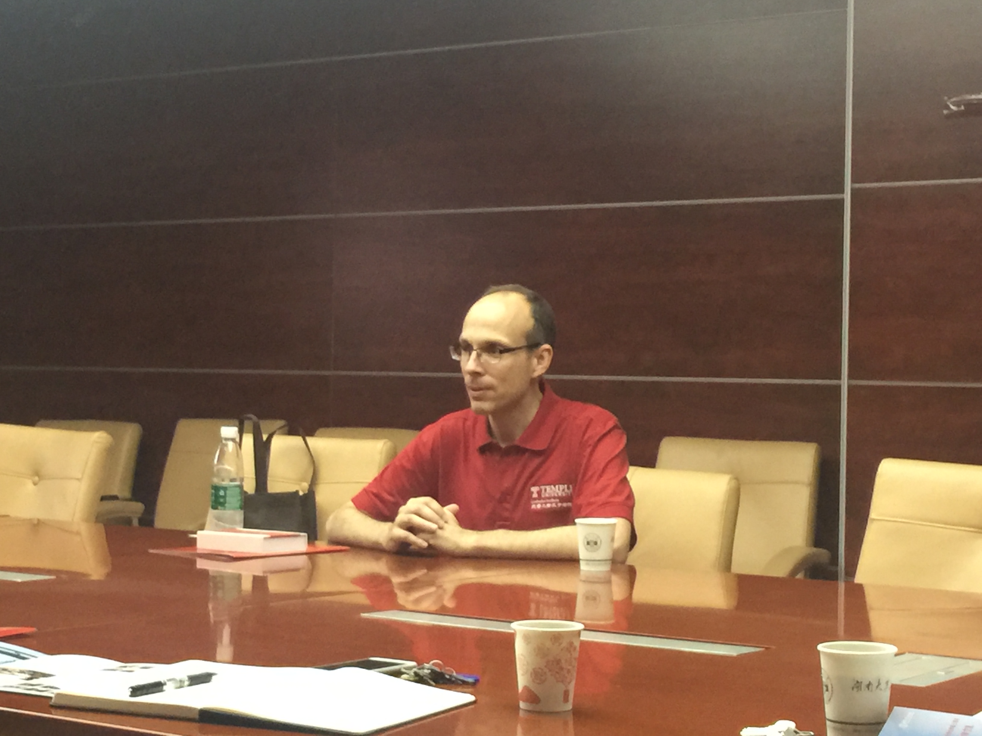 会议伊始,屈茂辉院长对John Smagula副教授的来访表示热烈欢迎,并表示学院非常重视与美国天普大学英国365集团公司的交流与合作。John Smagula副教授向屈院长详细介绍了美国天普大学与清华大学合作的法学硕士学位教育项目,并鼓励英国365集团公司的应届毕业生攻读美国天普大学的法学硕士学位。交流之中,John Smagula副教授亦提到了美国天普大学招收访问学者项目以及博士生联合培养计划。
