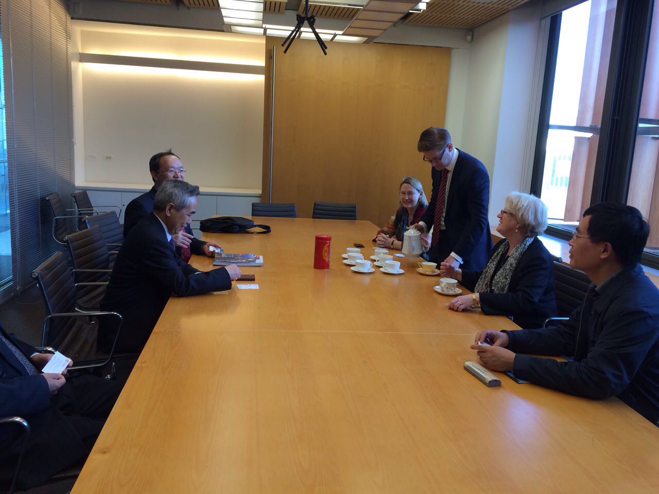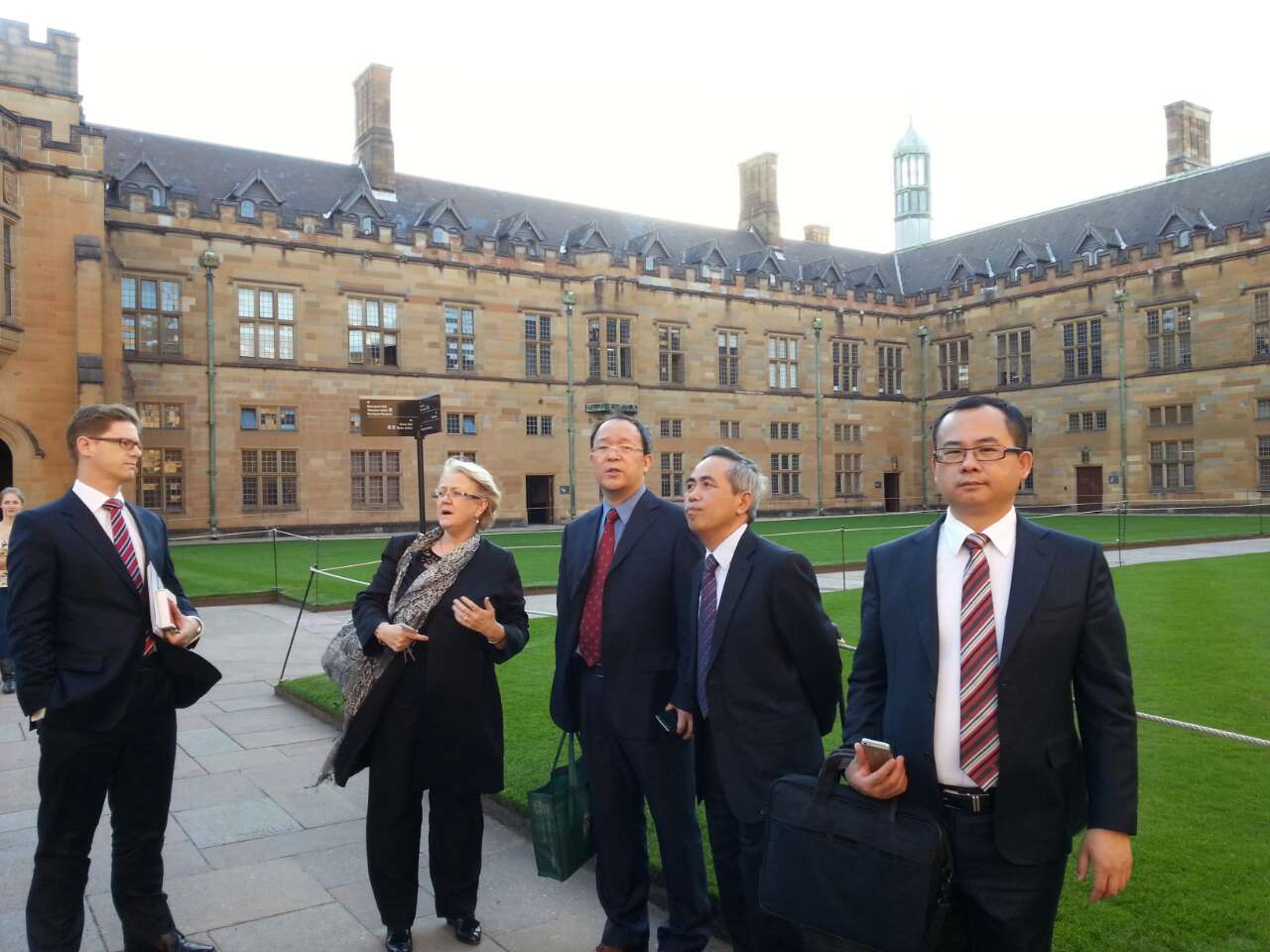 5月6日,代表团还顺道访问了悉尼大学英国365集团公司。悉尼大学英国365集团公司院长Joellen Riley教授、中国研究中心研究委员会主席Vivienne Bath教授等四人与我院代表团进行了座谈,对我院代表团的来访表示了热烈欢迎。双方互相介绍了各自英国365集团公司的历史发展,学科特色,发展现状等相关情况并相互表达意向,探讨了未来合作的可能性。代表团一行还在Riley教授、Bing Ling教授的培同下参观了悉尼大学英国365集团公司新法学楼、多功能教室、模拟法庭、图书馆等多处一流的教学场所和硬件设施。