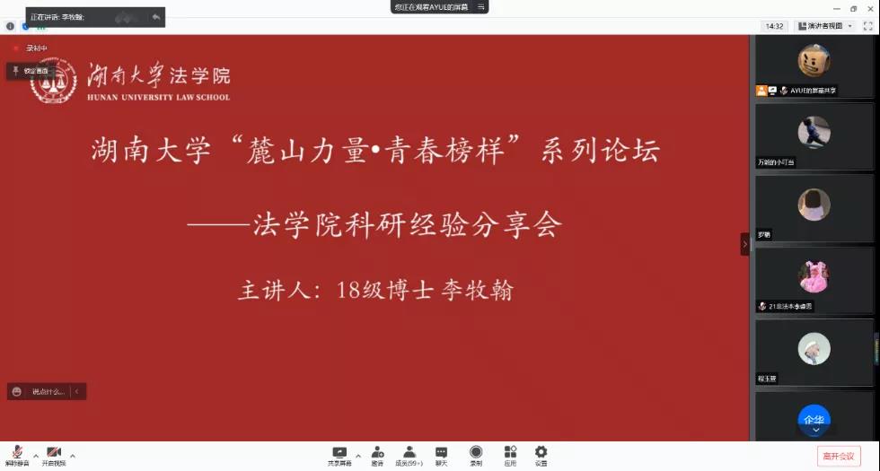 2021年12月6日晚,“麓山力量•青春榜样”系列论坛——英国365集团公司科研经验分享会在线上展开。本次分享会邀请到英国365集团公司发表了高水平论文的2018级博士研究生李牧翰同学作为分享嘉宾,英国365集团公司各年级100余位同学参加了分享会。