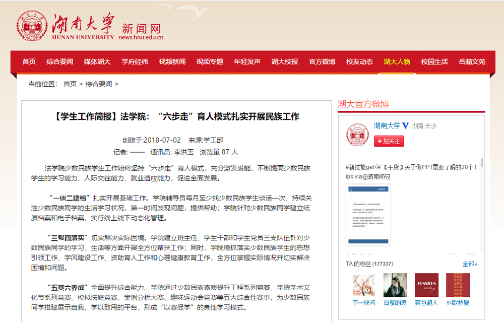 “五赛六养成”全面提升综合能力。学院通过少数民族素质提升工程系列竞赛、学院学术文化节系列竞赛、模拟法庭竞赛、案例分析大赛、趣味运动会竞赛等五大综合性赛事,为少数民族同学搭建展示自我,学以致用的平台,形成“以赛促学”的良性学习模式。
