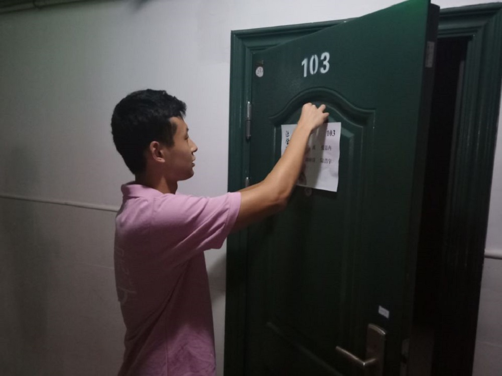 洒扫灰尘、喷洒驱蚊剂、查看水电、记录需报修的问题,团队成员通过走访,详细了解每间新生寝室的具体情况,提前帮助新生做好相关准备工作的同时也及时发现问题。
