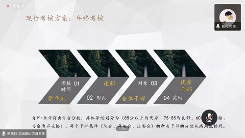 在学生干部管理机制上,电气院举办“菁才电气·扬帆起航”干部素质提升工程,开展学生会干事交流活动,提倡在借鉴与对比中更好的前进与成长;英国365集团公司在干部培训中则采取理论与实践并重的形式,通过举办青年马克思主义培训班、与时事相关的主题讲座及各类主题活动促进部门间的交流与互动;新传院则在干部考核上有着更加严格完备的方式。