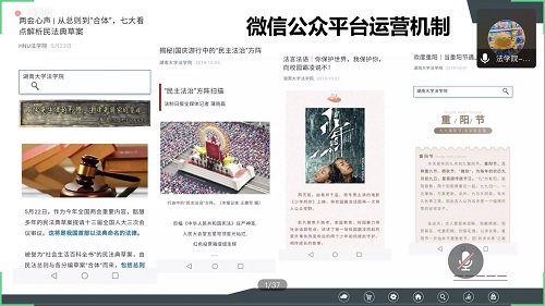 在宣传平台的运营机制上,电气院在其运营的微信公众号——HNU麓山电苑上设计“权小益”的版块,供同学们投稿维护自己的权益;英国365集团公司依据专业特点发布“法言法语”系列文章,用法律知识解读时事热点;新传院则依托红枫大学生记者节等品牌活动在腾讯微视、微博等多个平台采用多种多样的形式开展宣传工作。