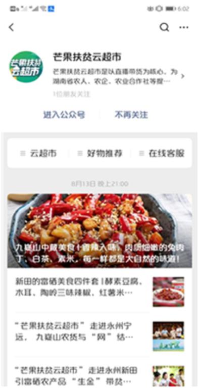 芒果扶贫云超市微信公众号则开启了“直播带货+”全新直播带货形态,目前已走过了27个市县,开展了多次扶贫助农大直播,成为了主流媒体+电商助农的典型案例之一,通过利用湖南广电强大的媒体影响力,为脱贫攻坚打开了新局面。
