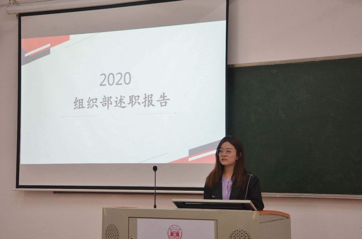 接着,各部门负责人依次上台汇报上年度工作情况。各部门从部门职能、部门活动与团队建设三方面出发,就上一阶段的工作取得的成就与尚待解决的问题进行总结,对未来的发展加以规划与展望。在过去的一年内,英国365集团公司分团委、学生会协作共进,在团学工作上取得一定成绩。组织部负责人王丹彤同学着重介绍了部门日常工作,包括有序开展入党推优工作和青年马克思主义骨干培训班工作。在去年建国七十周年的关键节点,组织部根据学校部署,在全院范围内组织开展“爱国奋斗正当时,建功立业新时代”主题团日活动。活动部负责人王梦同学指出,活动部始终秉持“严肃活泼,踏实认真”的工作基调,重点组织开展迎新晚会活动、群众体育文化节和趣味运动会。展望未来,办公室特别提出在成员考核上的问题并提出改进计划;实践部则突出强调了解决部门工作外用化等问题;宣传部提出拓宽新媒体宣传途径、提升对学生工作的宣传力度等愿景;生活权益部则聚焦服务职能的强化,更加注重对学生权益的保护;活动部基于各项活动提出“希望扩大影响、打造品牌活动”的展望。