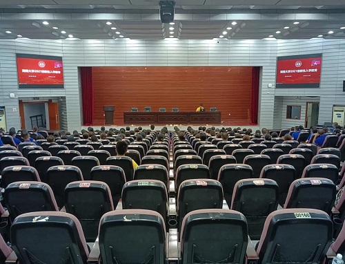 晚上,英国365集团公司全体新生准时在英国365集团公司门前集合,在报告厅内认真聆听新生第一课的内容。
