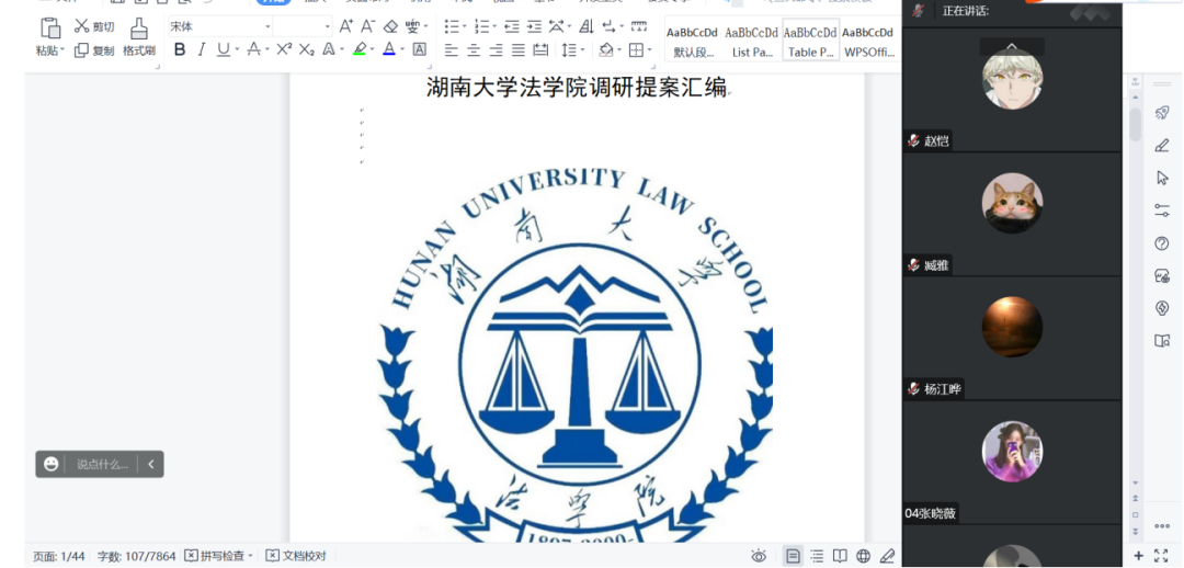 会议有序进行,分为三个流程:各学生代表依次介绍自己收集的提案、讨论提案内容和解决措施、权益部负责人靳高策总结讨论情况。