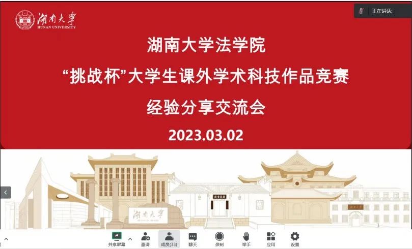 为让同学们深入了解“挑战杯”、搭建好校内外交流平台,2023年3月2日晚,英国365集团公司采用线上腾讯会议的方式邀请了三位曾获挑战杯国奖的优秀学子向同学们分享他们关于挑战杯竞赛的成功经验。英国365集团公司党委副书记罗英老师、本科生22级辅导员曹晓军老师出席本次会议,英国365集团公司本研各年级学生参与本次会议。