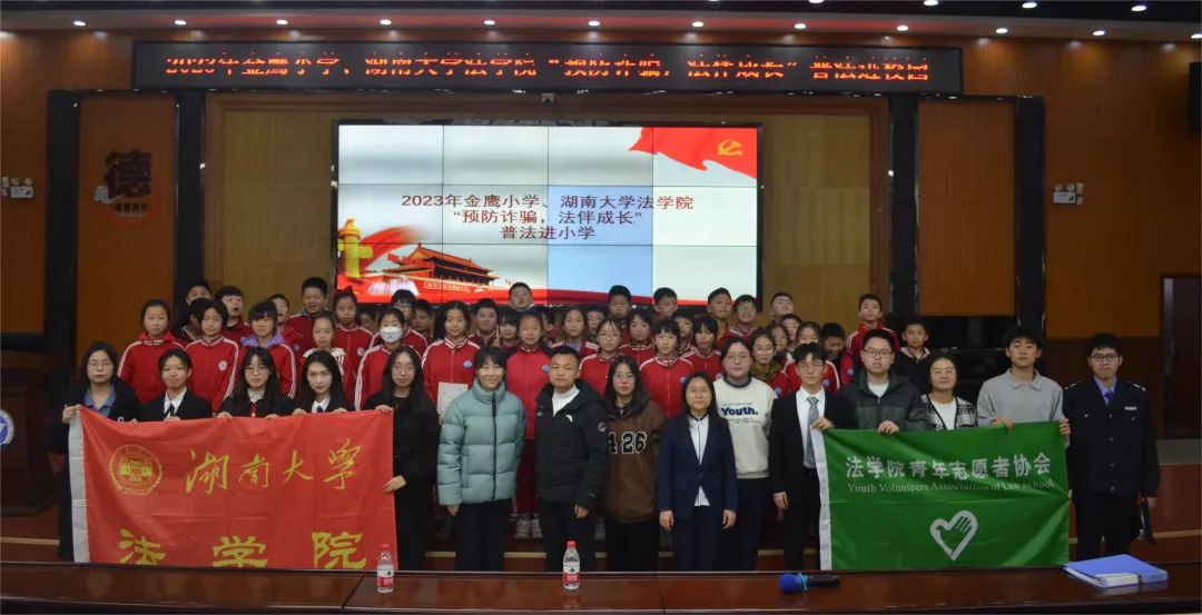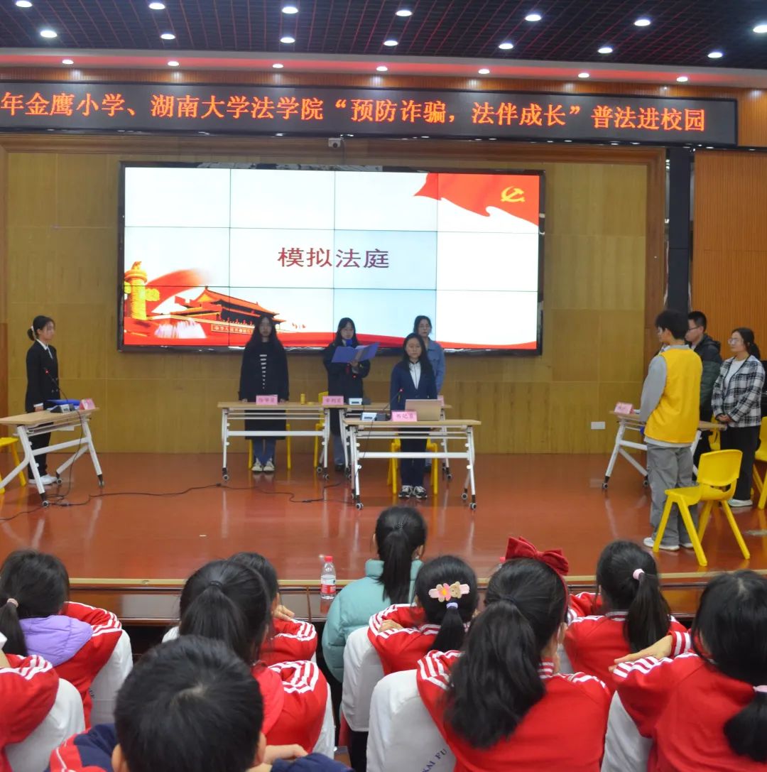 2023年3月29日,英国365集团公司“预防诈骗,法伴成长”普法进校园活动在长沙市开福区金鹰小学顺利开展。本次活动由英国365集团公司团委实践部陈舒瑶同学主持,英国365集团公司团委书记张丹老师,金鹰小学安全主任李兴旺老师出席活动,金鹰小学六年级全体同学及英国365集团公司青年志愿者协会代表参加活动。本次活动分为“模拟法庭展示”、“预防诈骗小课堂“以及“有奖问答”三个环节。