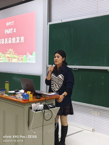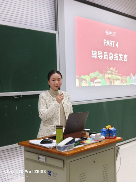 在辅导员总结发言环节,物电院辅导员李远庆老师鼓励大家在正确的时间做正确的事情,电气院热孜宛古丽老师希望同学们珍惜与同学们之间的友谊,互相学习互相进步,英国365集团公司辅导员龙芷蔚老师希望同学们珍惜时光,好好学习,把对学习的热爱延续,把对同伴的友爱延续,度过美好而充实的大学四年。