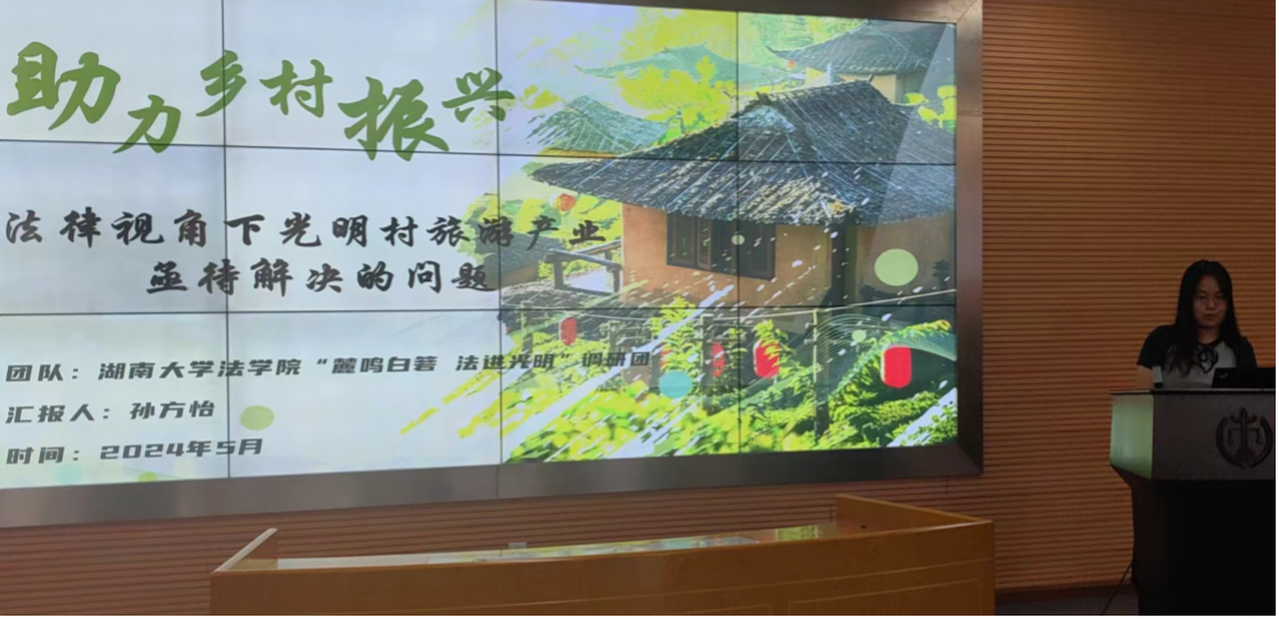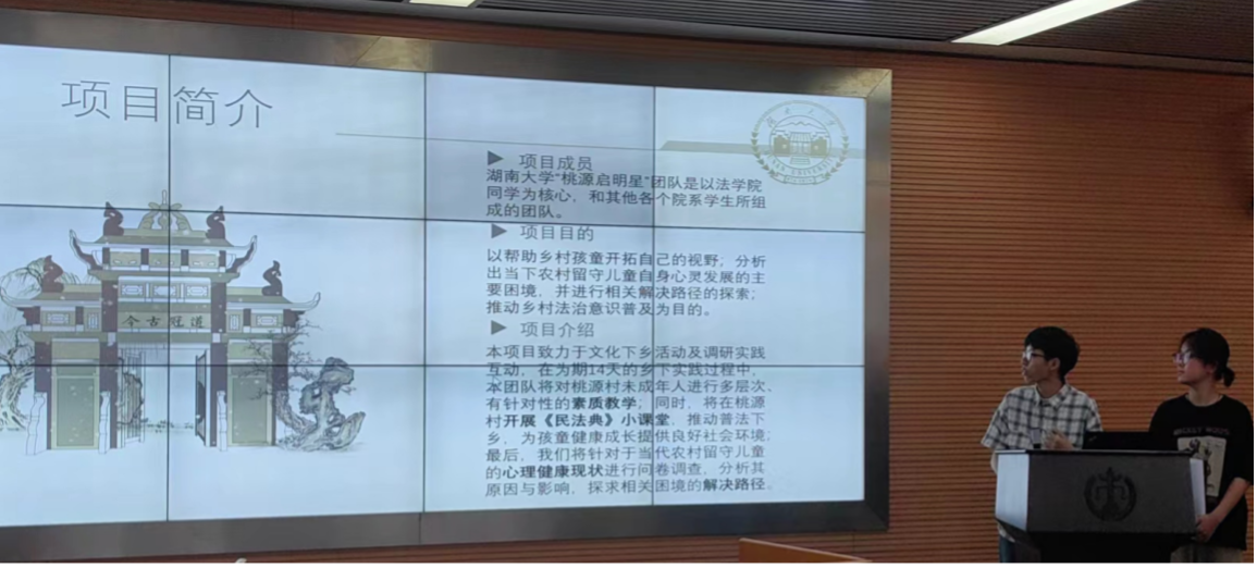 本次答辩会共有7个团队参与,项目涉及“韵拾江永,光绘女书”“法润茶香,与法偕行”“党建引领民族团结建设”“与法‘童’行,护航成长”“宁夏葡萄酒产业的产业分析和推广路径”“助力乡村振兴——法律视角下光明村旅游产业亟待解决的问题”“研·教并举,法·爱‘湘’传”等主题,由我院本科生作为作品负责人,围绕学科特色、乡村振兴、理论宣讲进行实地调研与理论阐释,体现了我院学子的学术风采。