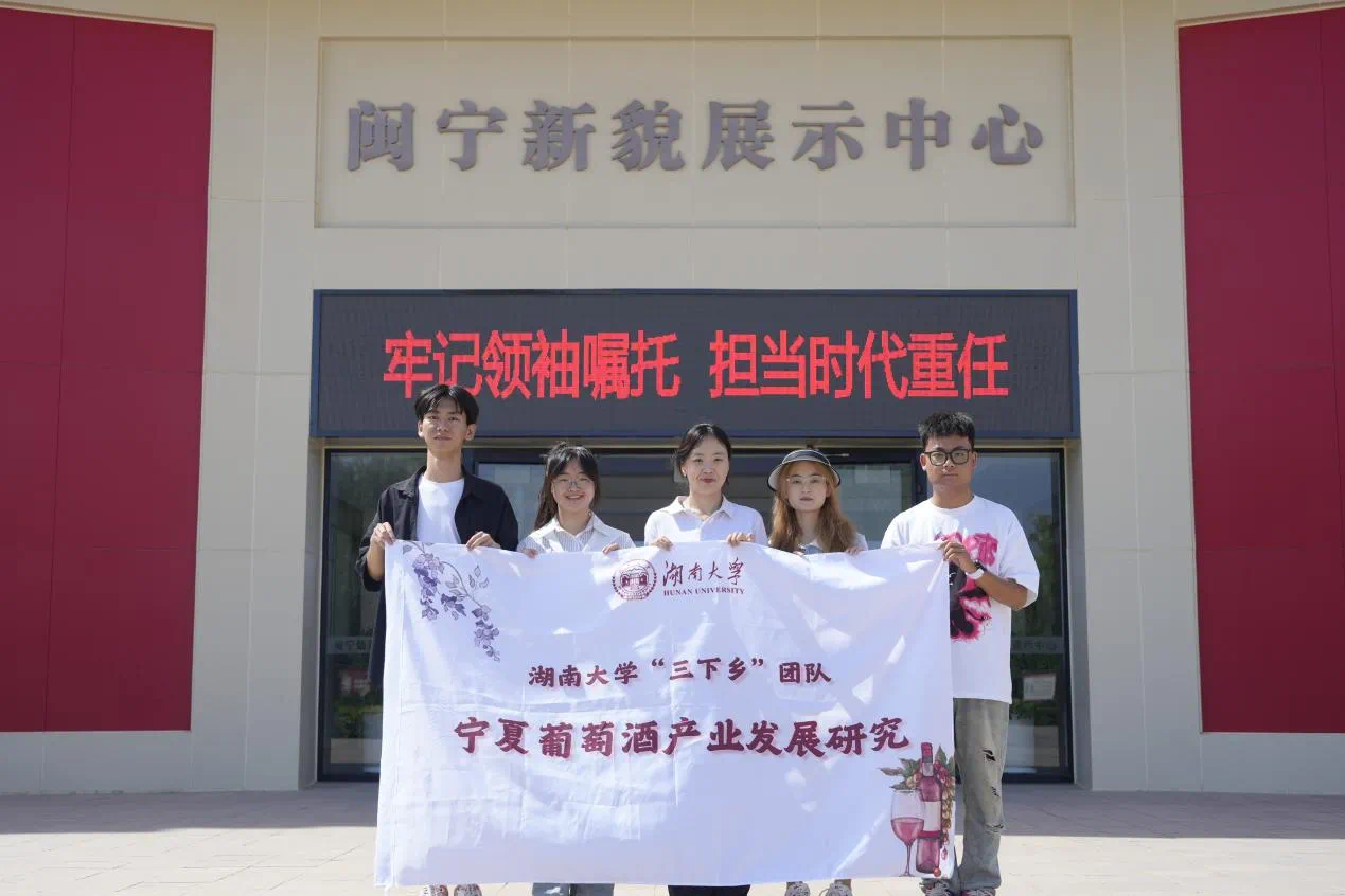 团队参观并走访了闽宁镇镇史馆,了解闽宁镇的发展历史,感动于26 年间闽宁两省的守望相助,激动于;前往闽宁故事茶文化体验馆,体验宁夏八宝茶的独特魅力,见证产业脱贫的实效;来到90%为女性员工的禾美扶贫车间,感受女性力量在戈壁滩上生根发芽;前往宁夏国家葡萄及葡萄酒产业开放发展综合试验区,在了解世界各国特色葡萄酒品牌的同时,感受宁夏贺兰山东麓生产的葡萄酒日益强大的国际竞争力;前往周边乡村与酒庄发放问卷,对酒庄工作人员和村民进行访谈,感受一场以酒文旅深度融合为牵引的创新裂变。