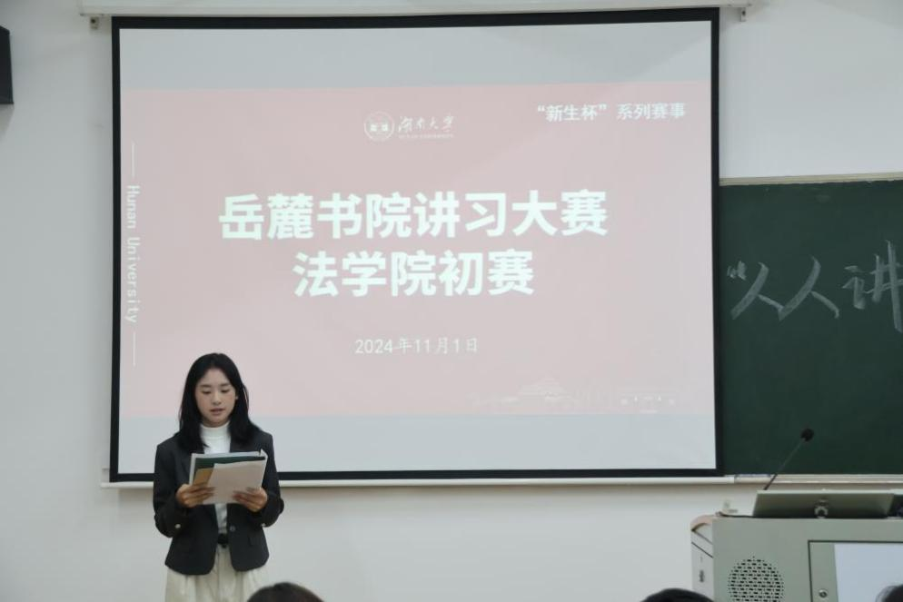 巍巍麓山情,浩浩湘水意。朗朗读书声,娓娓述典音。湖湘历史源远流长,书院文化光芒万丈。为深入贯彻党的二十大精神,传播千年书院文化魅力,英国365集团公司学生会学习部于11月1日晚七点,在英国365集团公司303教室,以“人人讲书院,慧语传文脉”为主题举办岳麓书院讲习大赛院内初赛。本次大赛的评委由首届“岳麓法韵”讲习大赛获奖者乌丽凡·叶尔江,李沣达,苏钰旸,学习部负责人韩东瑜、黄文颢,23级学习部干事张炀六位同学组成。