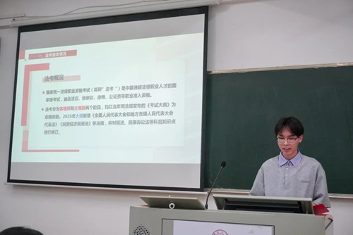 第三个进行分享的赵恺同学着重介绍了法考的其他注意事项,系统梳理了备考资料的获取渠道。首先,他从法考的最新概况出发,提醒同学们注意有关民法、民事诉讼法等科目知识点的最新修改的动向。关于考试模式,他提到考生是随机分配场次,要做好可能分配到较偏僻场地的心理准备。其次,对于信息获取与资源整合,他推荐利用微信公众号获取资料、夸克网盘存储课程资料,并借助小红书、微博等平台搜集押题信息与背诵技巧。针对备考工具,他推荐充分利用竹马APP的刷题、模考功能,强调分科真题训练与速度提升的重要性,同时提醒备考考生关注司法部官网及名师微博,及时获取考纲变动与政策解读,达到与时俱进、臻于至善的效果。