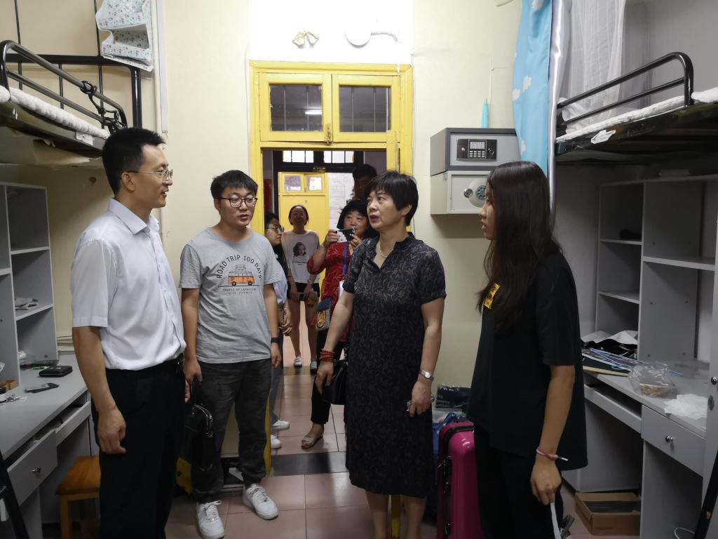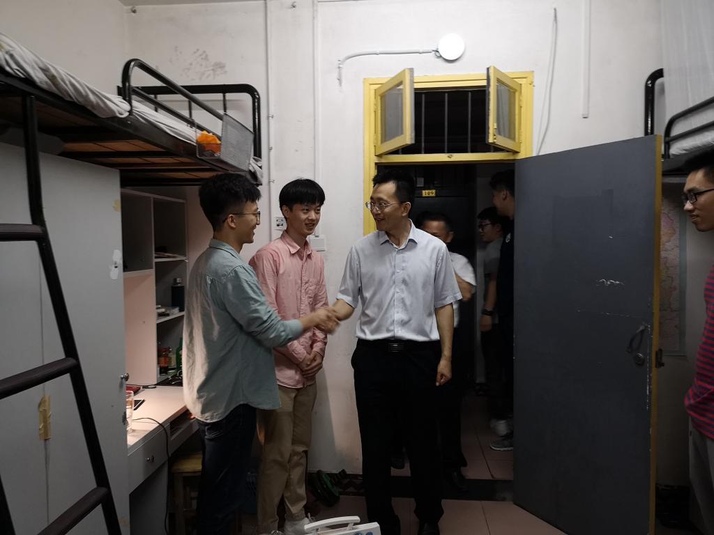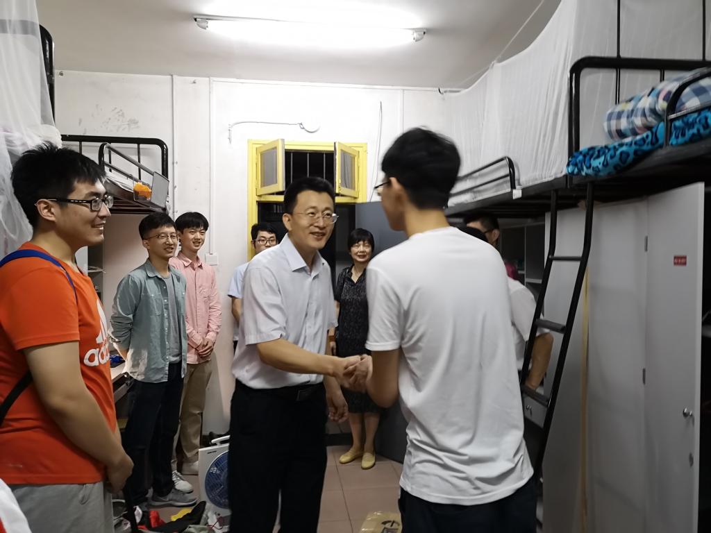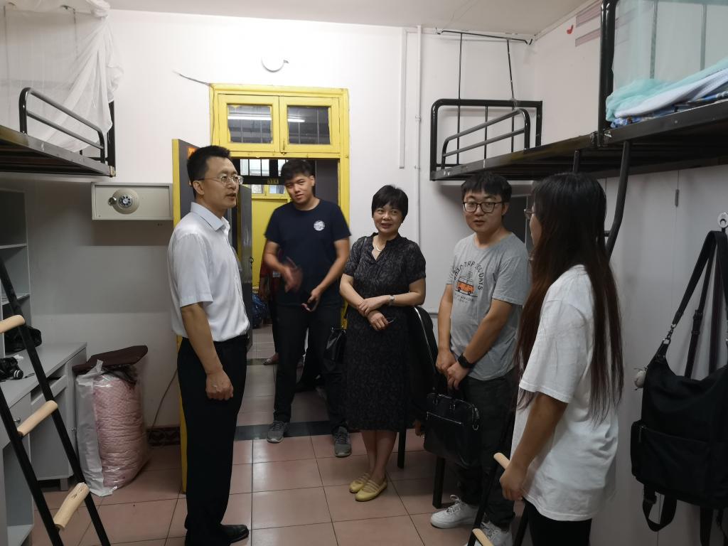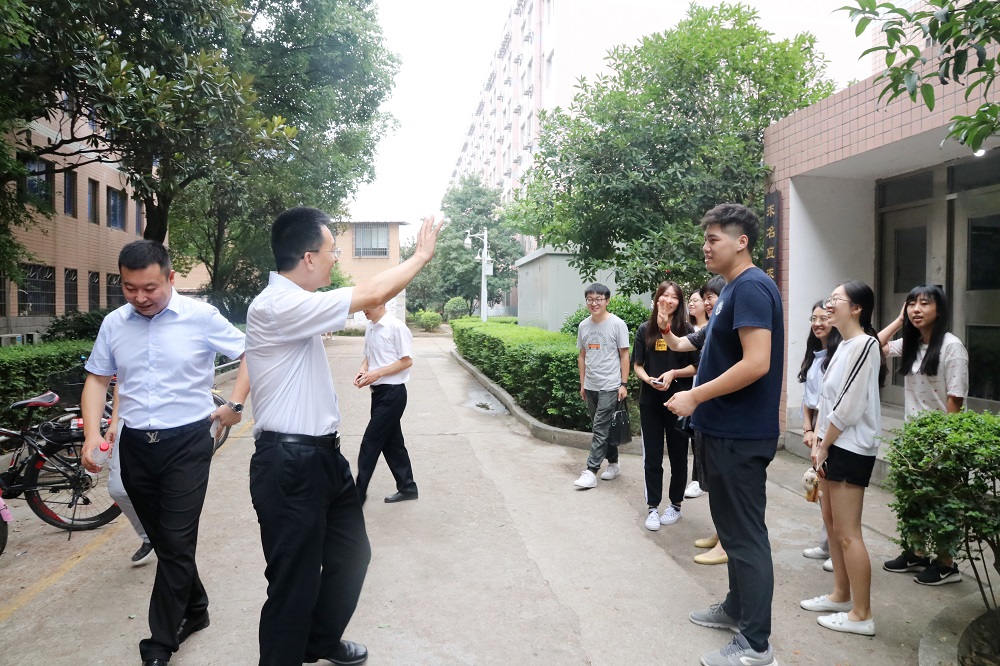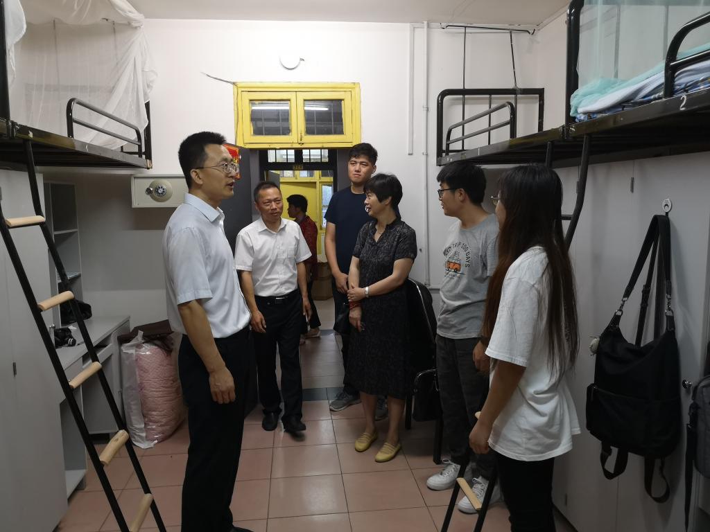 6月21日上午,校党委副书记于祥成在学生工作部部长宋杰、英国365集团公司党委副书记兼副院长付蓉芬、学生工作部园区管理办主任吴谦、英国365集团公司团委书记杨凯、实习辅导员王浩的陪同下,来到我院2018届本科毕业生寝室,了解毕业生就业和返程情况,看望并送别毕业生。