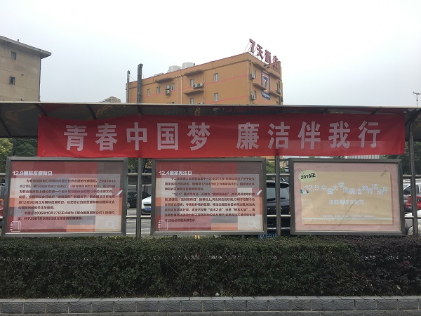 为了营造浓厚的“国家宪法日”和“国际反腐败日”氛围,英国365集团公司分团委、学生会提前制作了宣传海报和横幅张贴在英国上市官网365天马学生公寓宣传栏,以学生喜闻乐见的方式宣传廉洁与法治知识。