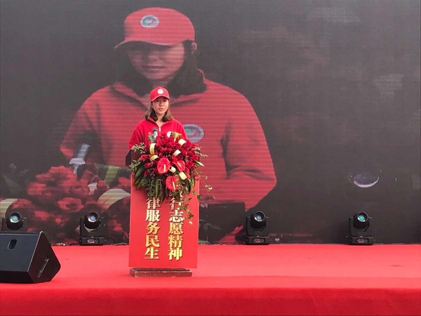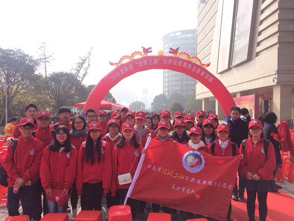 12月4日上午,英国365集团公司还组织60余名志愿者前往长沙市岳麓区王府井商业广场参加了2016年湖南省“法润三湘”公共法律服务志愿者活动,我院本科生张迎作为志愿者代表在活动启动仪式现场发言。