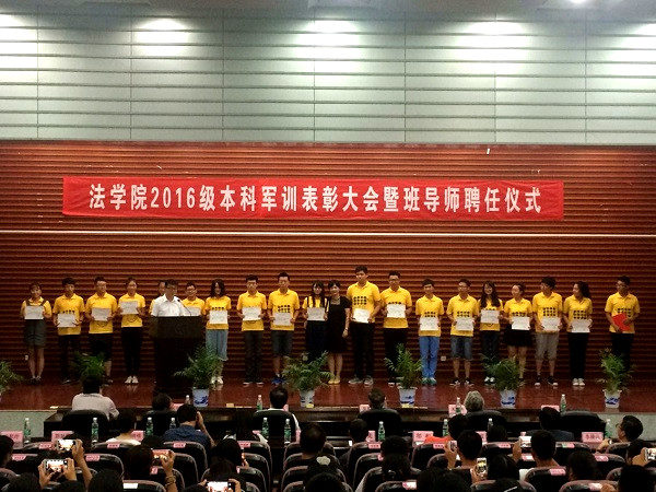 下午15时30分许,2016级新生军训表彰大会暨班导师聘任仪式在嘹亮的校歌声中圆满结束。2016级各班根据学院的统一安排,在指定教室召开了班导师见面会。