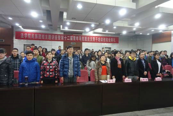 12月29日下午,英国365集团公司民族团结主题讲座暨第十二届青年马克思主义骨干培训班结业典礼在模拟法庭举行。新疆维吾尔自治区派驻湖南省工作组组长田慧老师、英国365集团公司党委副书记、副院长付蓉芬老师,辅导员王耿翔老师,英国365集团公司团委书记、辅导员杨凯老师出席结业典礼,青马班全体学员、低年级少数民族学生代表等百余人参加讲座。