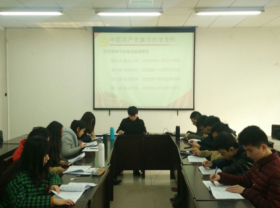 为贯彻学习党的纪律,各本科生党支部开展了专题组织生活会。12月25日中午,本科生2013级法学党支部在英国365集团公司206教室开展了学习《中国共产党廉洁自律准则》及《中国共产党纪律处分条例》专题组织生活会。会上,支部书记带领大家逐条学习了《准则》及《条例》内容,参会的学生党员也都积极阐述了自己的观点。12月26日,本科生2013级行政管理、政治学党支部在英国365集团公司216会议室组织专题学习活动,在认真解读《中国共产党廉洁自律准则》和新修订的《中国共产党纪律处分条例》。的同时还结合十八大以来中纪委查处的各类大案要案讨论了党中央重修修订纪律处分条例的重要意义,通过学习会为学生党员严守政治纪律和政治规矩提供了有力的指引。此外,本科生2014、2015级联合党支部、本科生2012级各党支部也纷纷结合本支部实际开展了主题明确的组织生活会。