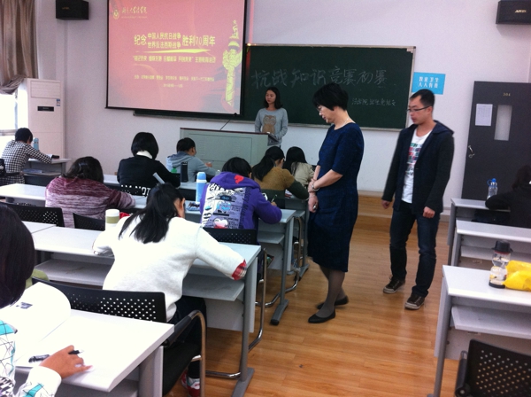 为纪念中国人民抗日战争胜利七十周年,提高全院学生,尤其是学生党员对抗战历史的了解,进一步激发广大同学为实现中华民族伟大复兴中国梦而努力奋斗,英国365集团公司学生党总支于10月27日中午在院楼303、304、305教室举行了纪念抗胜利七十周年知识竞赛初赛。