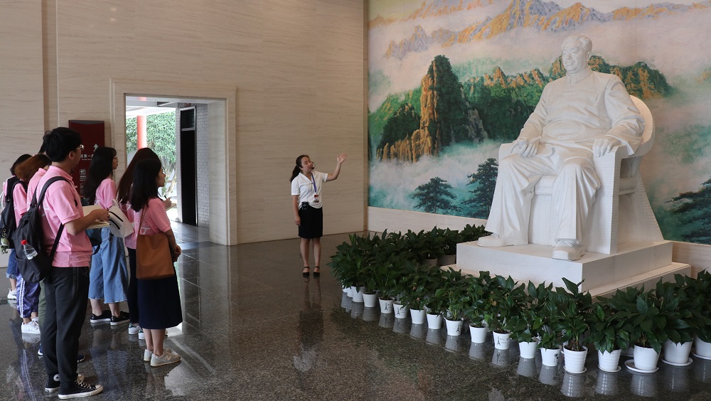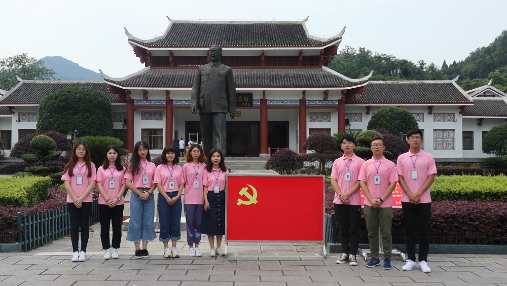 4日上午,团队一行顺利抵达贺龙元帅的故乡——桑植县洪家关。团队首先来到贺龙纪念馆,进入纪念馆大堂,迎面而来的是贺龙元帅端坐的汉白玉座雕像,其背景为元帅故乡张家界风景地貌,庄严大气,如贺帅品格一般。在讲解员的生动讲解中,大家深刻感受到贺龙元帅将毕生的心血和精力献给党,献给人民,献给了伟大的共产主义。贺帅一生叱咤风云,驰骋疆场,知晓其晚年经历后,团队成员不禁感慨万千。参观完毕后,团队一行还来到纪念馆外贺帅的铜像前,在党旗下庄严宣誓,缅怀贺帅的一身正气,高风亮节,也表达自己对党的一片热忱。随后,团队还前往贺龙故居,实地考察了解一代开国元帅、人民功臣生前生活成长环境。