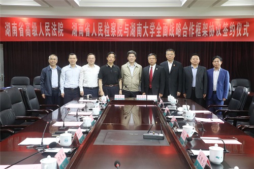 5月21日上午,我校与湖南省高级人民法院、湖南省人民检察院全面战略合作框架协议签约仪式在校办公楼二会议室举行。我校与湖南省高级人民法院、湖南省人民检察院将围绕建设社会主义法治国家需要,找准人才培养和司法需求的结合点,构建法治人才培养共同体,为全面推进新时代法治湖南建设提供有力的人才智力保障。