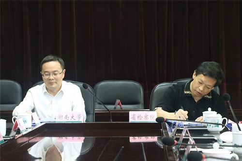 湖南省高级人民法院副院长杨翔、副巡视员尹南飞,湖南省人民检察院党组副书记、副检察长卢乐云,校党委书记邓卫、副校长谢赤等出席仪式。校党委副书记、纪委书记曹升元主持仪式。