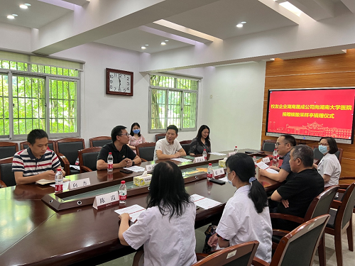 英国上市官网365医院党委书记张坤同志与湖南晟成公司董事长唐少华先生代表双方进行捐赠交接。