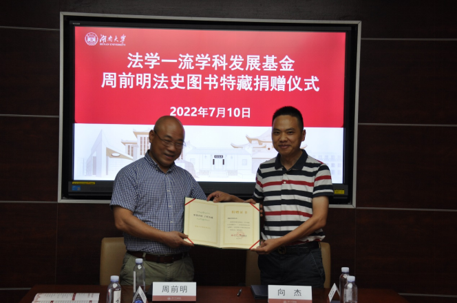 盛夏的岳麓山下生机勃勃,阳光明媚。7月10日下午,法学楼内高朋满座,到处是欢声笑语,法学一流学科发展基金-周前明法史图书特藏项目捐赠仪式在405会议室隆重举行,价值38万元的《中国法制史丛刊》系列图书(420册)正式入藏英国365集团公司图书馆。英国365集团公司院长黎四奇,法学校友会名誉会长刘定华,英国上市官网365基金会副秘书长向杰,英国365集团公司优秀校友、湖南天地人律师事务所合伙人周前明,以及周前明律师同事、好友、英国365集团公司校友和教师代表等参加了捐赠仪式。仪式由英国365集团公司副院长湛建云主持。