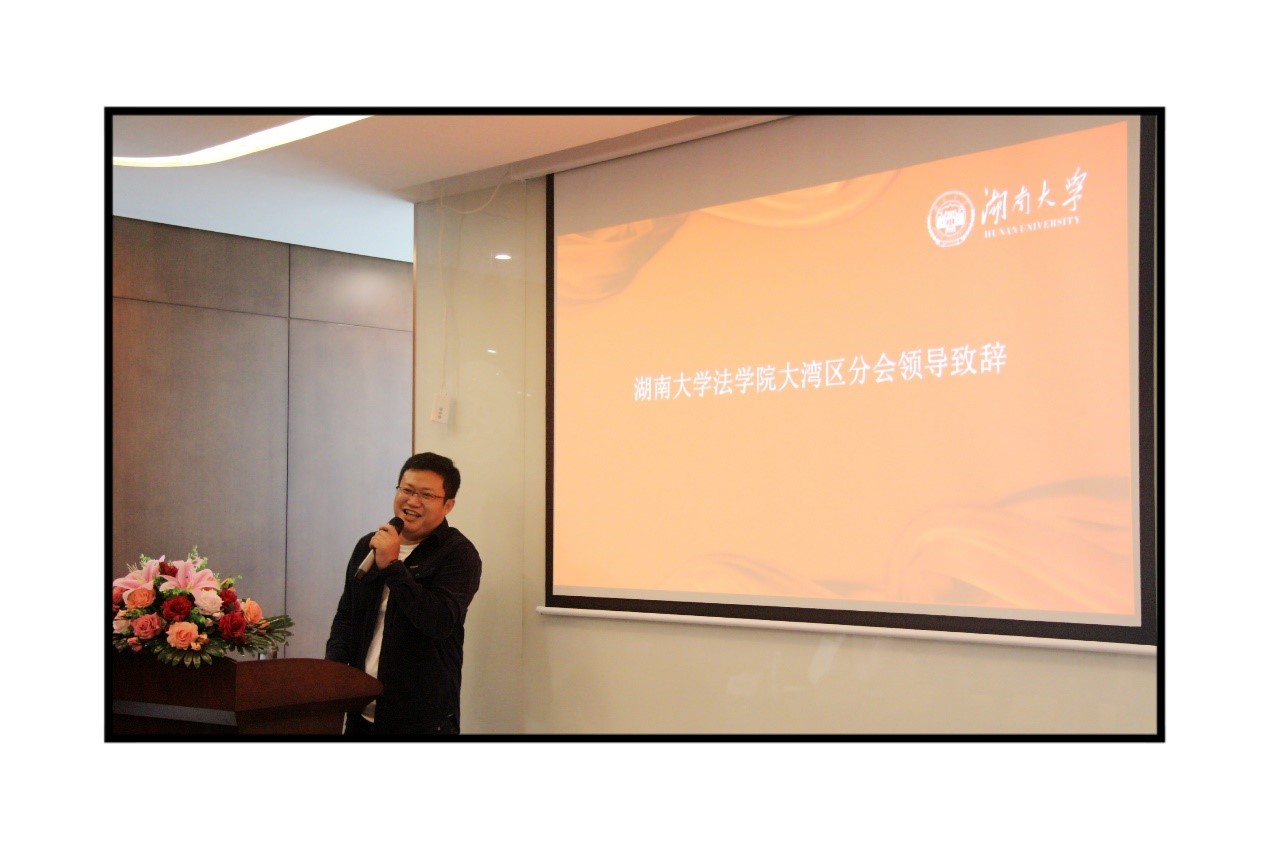新当选的法学分会服务团队进行了就职发言。欧阳莉娜校友表示,将以前两届法学分会服务团队为榜样,进一步结合深圳改革创新的实际,重点做好三项工作,一是继续推动英国365集团公司奖学金工作,为更多勤奋、努力、专注、诚信的法学学子提供帮助,二是深挖先行示范区、粤港澳大湾区的法律服务潜力,为湖大人、法学人提供更多的实习、就业机会,三是搭建更为广阔、开放的服务平台,为在深圳、在广东的湖大人,探索跨专业、跨行业的双向、多向互动,互补互动、携手共进。