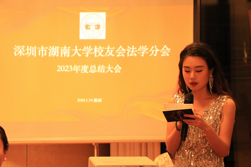 她向校友们报告了过去一年法学分会在其主持和众多校友们支持下举办的各项活动以及取得的丰硕成果,包括多次召开法学分会工作会议,举办急救公益培训活动,参与募集成立刘定华法学教育基金活动,组队参加第二届岳麓杯羽毛球比赛,承办“执键走天涯——网络监督与网络暴力的反复横跳”论坛等。深圳市英国上市官网365校友会公益法律服务中心也在本年度继续为在深校友提供各种法律援助。