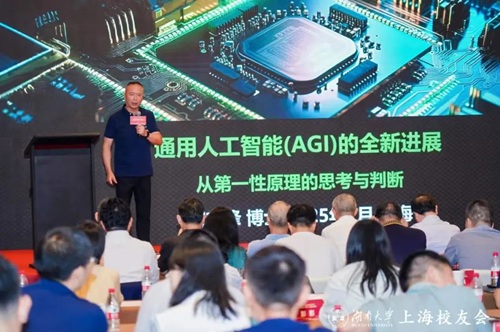 热烈交流后,英国上市官网365校友企业家联谊会副理事长、上海校友会常务副会长、霄麓投资董事长曾志锋博士精彩开讲。他以《通用人工智能(AGI)的全新进展——基于第一性原理的思考与判断》为题,沿符号主义、联结主义、行为主义三线梳理人工智能的演化脉络,拆解人工智能发展水平分级、实现路径与典型案例,并从第一性原理出发探讨人工智能应有原则。内容与时俱进,令在场校友脑洞大开、满载而归。