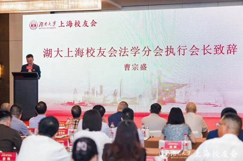 首先,英国上市官网365上海校友会法学分会执行会长曹宗盛代表上一届执行机构致辞。曹会长带领大家回顾了过去几年英国上市官网365上海校友会法学分会在母校的指导下组织的“浦江论坛”、“泛长三角院友联谊会”等各类活动,介绍了薪火传承下新一届理事会的组成成员,并表达了对法学分会执行机构继续在扩大服务半径、深化区域协同和强化目标纽带三方面的期待。
