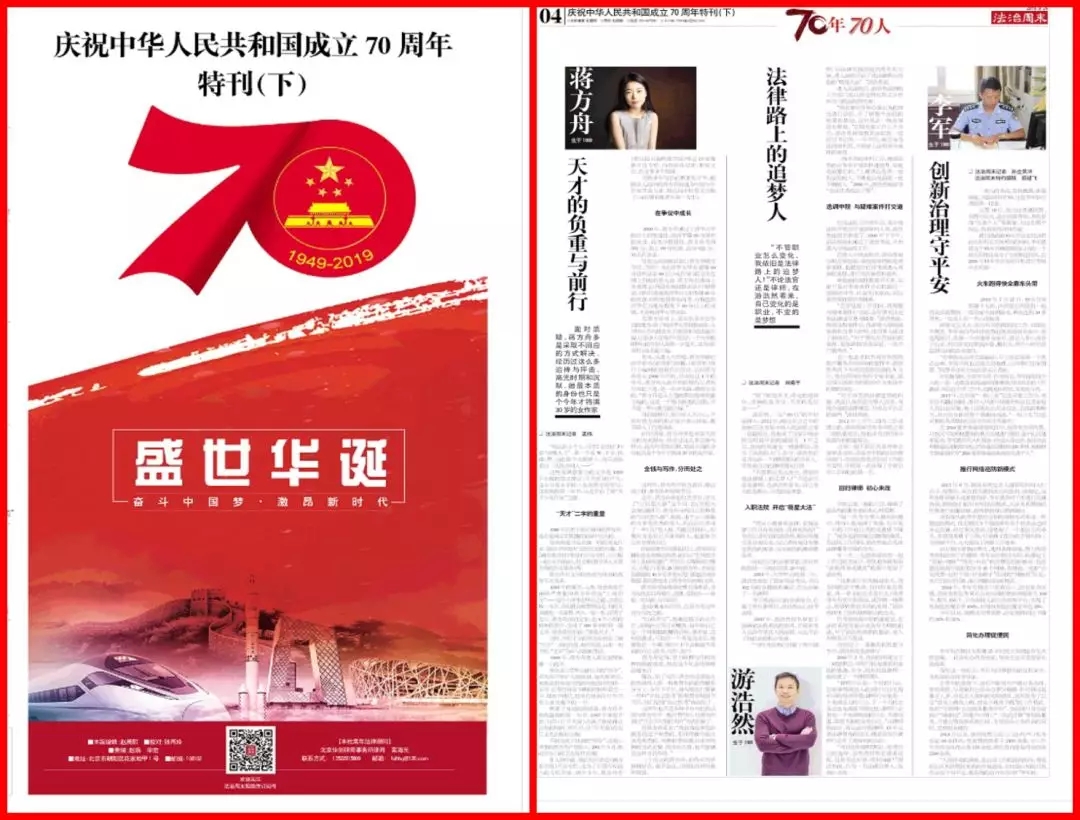 近日,湖南长沙律师、英国365集团公司06级刑法学硕士游浩然,作为一名长沙优秀的“80后”青年律师,入选《法制日报·法治周末》推出的国庆70周年“70年70人”专刊。