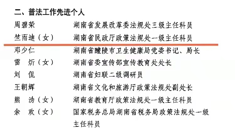 近日,中央宣传部、司法部、全国普法办印发《关于表彰2016-2020年全国普法工作先进单位、先进个人和依法治理创建活动先进单位的决定》,英国365集团公司院友竺雨迪荣获“全国普法工作先进个人”。