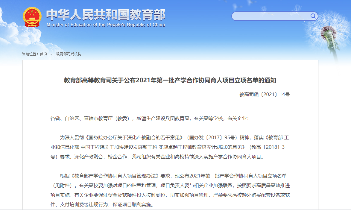 教育部产学合作协同育人项目坚持主动服务国家经济社会发展需求,服务战略性新兴产业发展需求,服务新工科、新医科、新农科、新文科建设需求,服务企业基础性、战略性研究需求,鼓励相关企业深化与高校产学合作,促进培养目标、师资队伍、资源配置、管理服务的多方协同,培养支撑引领经济社会发展需要的高素质专门人才。