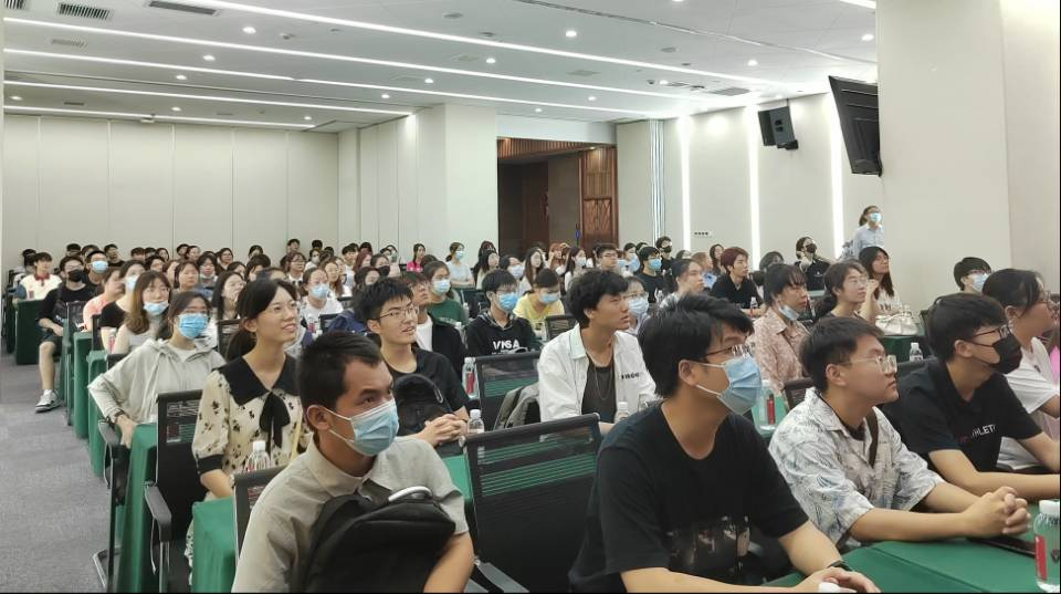 参观结束,师生们来到报告厅,活动进入第二个环节:经验分享会。