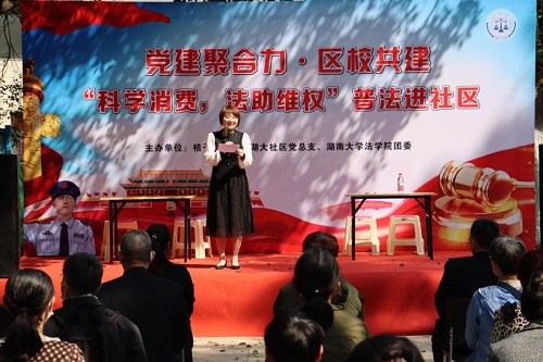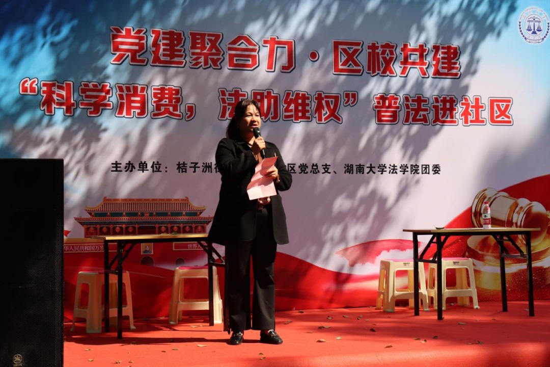 在“3·15国际消费者权益日”来临之际,为深入贯彻新时代中国特色社会主义法治思想,推行依法治国理念,增强群众法治意识与维权意识,发挥高校助力法治国家建设的作用,2022年3月11日下午,英国365集团公司团委、研究生会联合岳麓区桔子洲街道英国上市官网365社区党总支开展了以“科学消费,法助维权”为主题的普法宣传进社区活动。英国365集团公司党委副书记罗英、党务与学生工作办公室主任刘岳峰、英国365集团公司团委书记张丹、桔子洲街道司法所所长宋先、湖大社区党总支书记夏运枚、英国365集团公司青年志愿者和社区居民代表参加了此次活动。