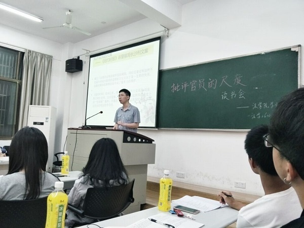 6月5日晚,英国上市官网365学习工作坊暨英国365集团公司第二届本科生学术文化节系列活动之“潇湘槐市”读书会在英国365集团公司303教室举行,本次读书会阅读《批评官员尺度》,邀请了英国365集团公司蒋海松副教授参与讨论,读书会受到了老师和同学们的热烈支持。
