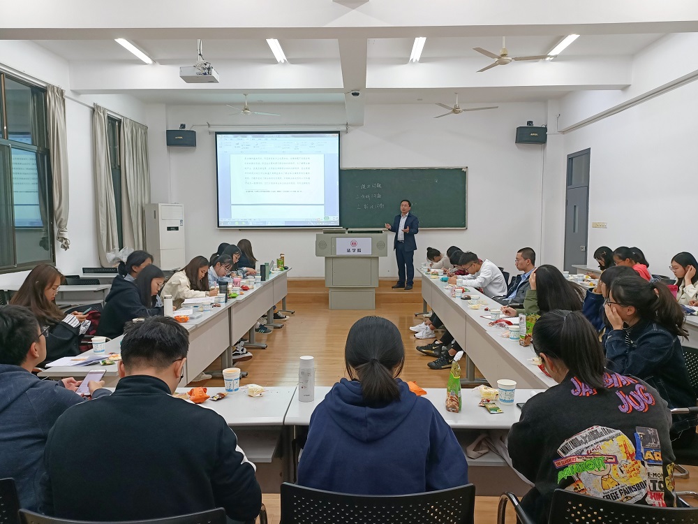 在会中,汪老师首先为大家讲述发送邮件时需要注意的问题,规范邮件的格式。接着,汪老师对同学们所提交的读书报告进行逐一分析与评价,他指出:同学们的读书报告存在的普遍问题是格式不规范和内容浅显。从提出问题到分析问题,再到最后的解决问题;从立意选题阶段,到文献综述阶段,再到最后内容写作的阶段,汪老师针对学术写作的方法及注意事项向同学们进行详细的阐述。