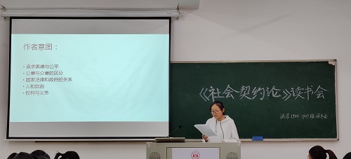 “带着问题去读书,给予自己看书的驱动力,然后才能内化为己用。”金昱茜老师这句话给同学们阅读方式提供了正确的指引,同学们减轻对阅读的抵抗心理,更为有效地感悟和学习先哲思想。通过本次读书会,同学们对卢梭地思想有了一定的了解,也在交流分享中碰撞出绚烂的思想火花,激励同学们阅读更多专业书籍、提高思想水平。下期读书会将继续研读《社会契约论》,敬请期待。