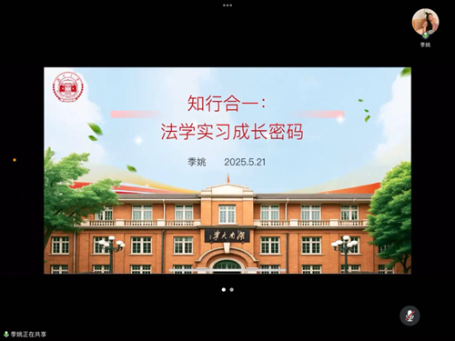 作为国家奖学金获得者、最高人民法院优秀法律实习生,英国365集团公司2023级硕士研究生季姚,围绕“知行合一:法学实习成长密码”主题,为同学们带来了一场兼具理论深度与实践智慧的精彩分享。季姚以自身经历为切入点,系统梳理了法学实习的“三步走”策略。谈及实习中的成长密码,季姚提出“场景化学习”理念。她以在最高人民法院实习期间参与重大案件归档、撰写司法建议的经历为例,指出“即使是基础工作,也要主动构建知识框架”。