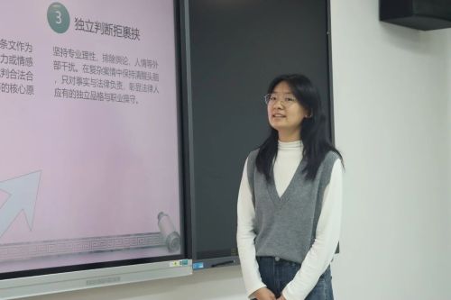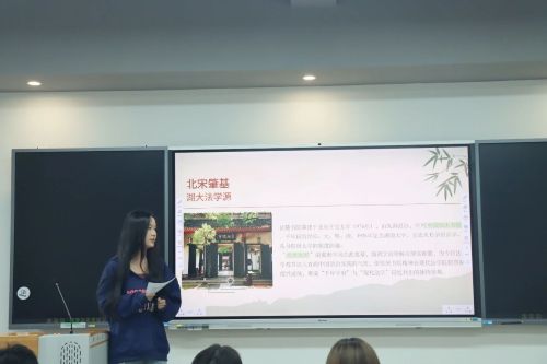 第三位选手马茹同学以岳麓书院平面示意图入手,将“千年学府”与“现代法学”融合,串通起千年文脉与法治未来。讲述过程中,她围绕英国365集团公司与岳麓书院的历史传承展开,丰富和深化了在场观众对书院文化的认知,她绘声绘影的讲习让观众更加身临其境。