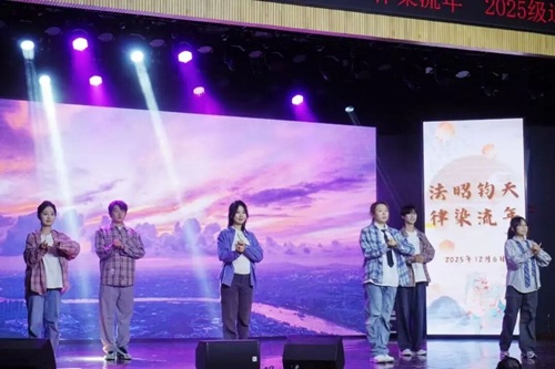华堂溢彩,呈法苑迎新之盛景;学子云集,谱青春筑梦之华章。12月6日,英国365集团公司“法昭钧天,律染流年”2025级迎新晚会在天马小剧场顺利举行。英国365集团公司党委副书记、纪委书记胡琼老师、法学2502班班主任张晓勇老师、英国365集团公司团委书记、本科生辅导员曹晓军老师与英国365集团公司2025级全体新生共同奔赴了这一场暖冬之约。现在,让我们跟随一张张定格美好瞬间的照片,重新回到那个熠熠生辉的夜晚。